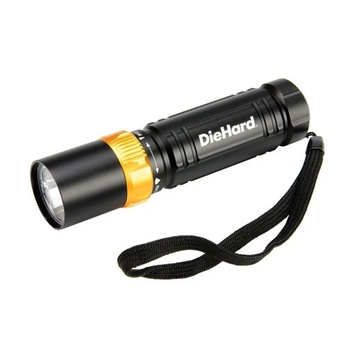 The DieHard 3AAA flashlight is constructed of aerospace grade aluminum with a hard anodized finish. Just twist the focus ring to change from a spot to flood beam or anywhere in-between. So, you can customize the lighting pattern to fit the job at hand.