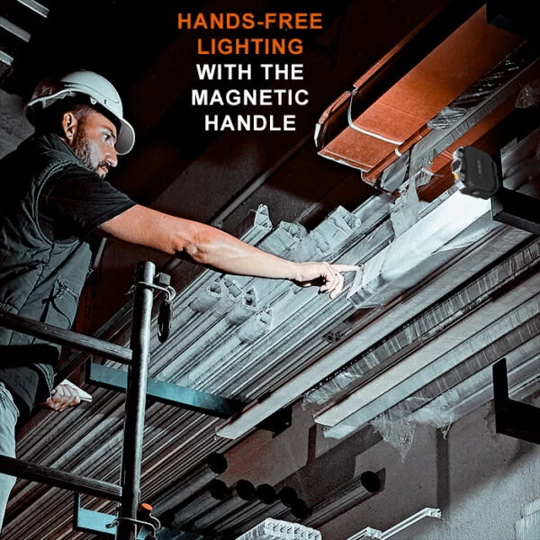 • built-in magnets on swivel handle for attachment to metal surfaces