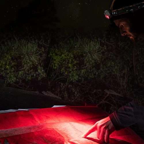 • white spot and white flood lighting modes plus low light red