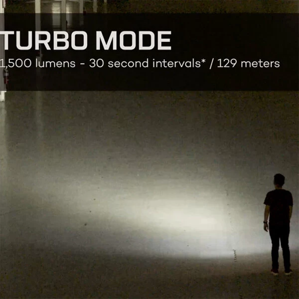 ☼ Turbo – 1,500 lumens, 30 seconds, 129m