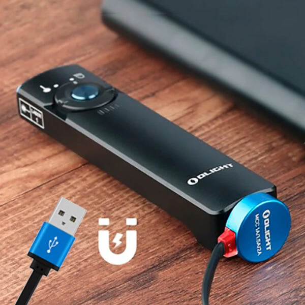 What’s included: Olight Arkfeld, rechargeable battery, magnetic charging cable, pocket clip
