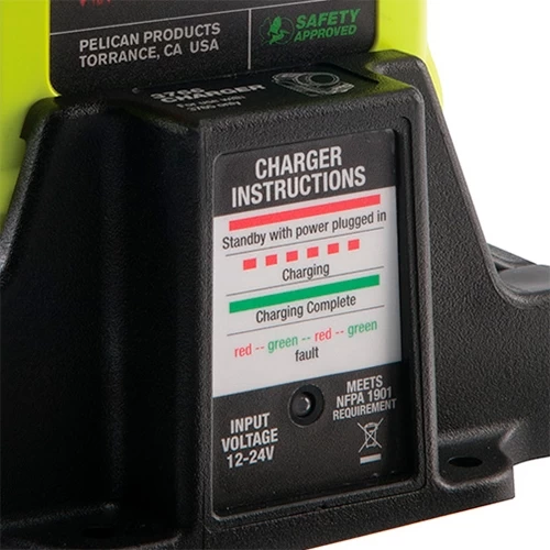 • slide flashlight into charging base for charging (works with Pelican 3769 battery pack only)