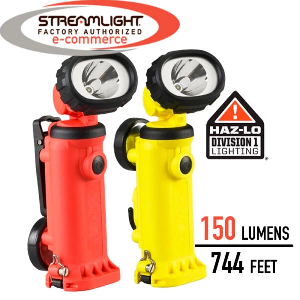 What’s included: Streamlight Knucklehead® HAZ-LO® Spot light, choice of hanging hook (yellow) or rear clip (orange), choice of rechargeable battery (with or without charger) or AA batteries; all models also include AA battery carrier