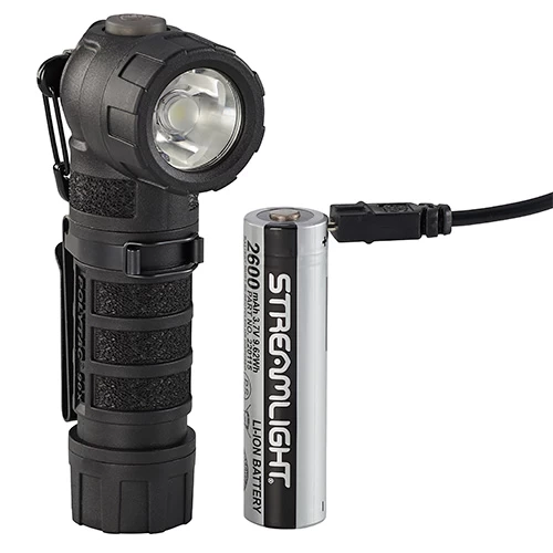 What’s included: PolyTac® 90X flashlight, integrated carabiner clip, pocket clip and choice of Streamlight SL-B26™ USB Rechargeable Li-ion battery, 2600mAh (18650) or Streamlight CR123A non-rechargeable batteries (rechargeable model also includes USB cable)