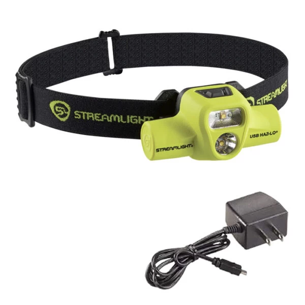 What’s included: Streamlight USB HAZ-LO® headlamp with rechargeable battery, head strap, rubber strap, 3M® Dual Lock® fasteners, AC charge cord (part 61463 also includes charging cradle)
