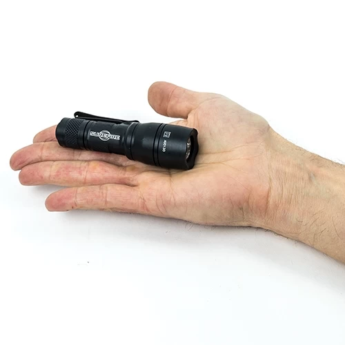 What’s included: SureFire E1B Backup with MaxVision Dual Output LED flashlight, pocket clip and battery